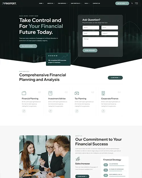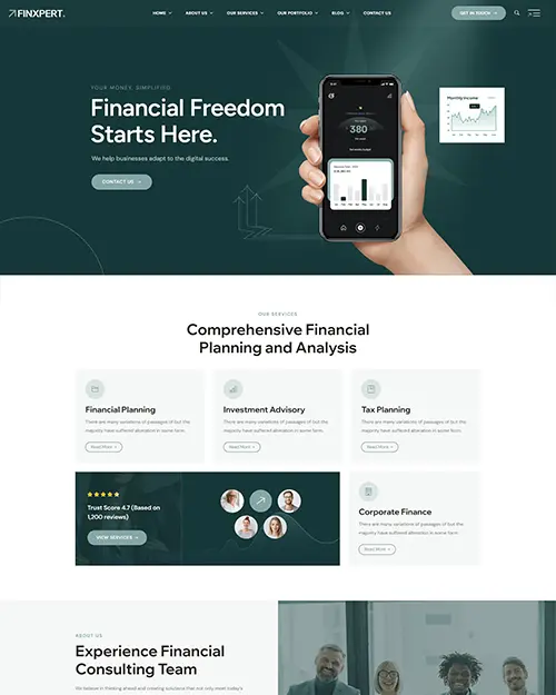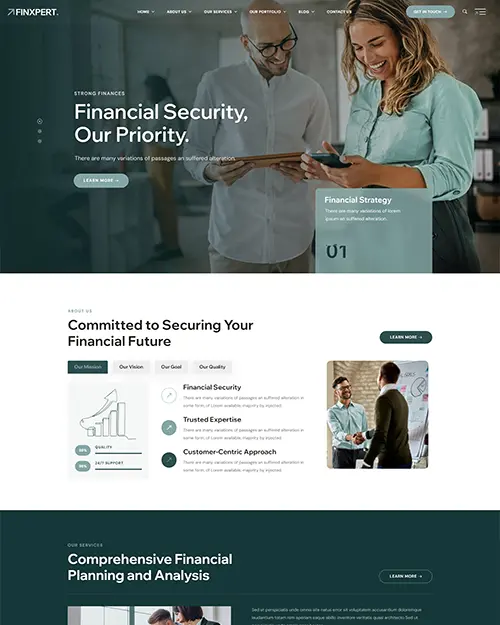 Precision Timing ServiceIt refers to the ability of a business to deliver products, services, or solutions within the promised timeframe. Timely service builds trust Read More 01. Team of ProfessionalsEffective communication, mutual respect, and shared objectives are essential for fostering a cohesive and productive team environment. Read More 02. Analyze Your BusinessA thorough business analysis enables you to set realistic goals, allocate resources effectively, and mitigate risks. It fosters innovation and adaptability Read More 03. About UsExperience and Expertise: Our Financial Consulting Team Learn More Market ResearchBy identifying market opportunities and potential challenges, companies can develop effective strategies to stay competitive. Success ProjectsWe completed 85% success project in business successfully. Sales IncreaseTargeted marketing campaigns, both online and offline, can attract new customers and retain existing ones. Offering promotions, discounts Finance StrategyBuilding Resilient Financial Strategies for the Future 0%Skilled and Profesional Advisors 0k+Active Users Product On Create 0+Clients Happy in the Long Term Financial Strategy & Plan Volunteering 88% 10 Years Of Experience 75% Supplemental Skills 95% Our ServicesComprehensive Financial Planning and Analysis Learn More Financial PlanningIt involves assessing your current financial situation, setting realistic objectives, and creating a roadmap. Read More 01 Investment AdvisoryRegular monitoring and adjustments ensure investments remain aligned with changing goals and market trends. Read More 02 Tax PlanningProper tax planning can help individuals and businesses reduce taxable income, defer taxes, and optimize tax-saving. Read More 03 Corporate FinanceFinancial analysis and forecasting help in making informed strategic decisions. Managing working capital efficiently. Read More 04 Our ProcessDigitize Your Business Now Best Experts Contact Us 01Initial ConsultationIntroduction between the consult and the client. Understand the client's financial situation, goals, challenges, and expectations. 02Data AnalysisAnalyze cash flow, income, expenses, debts, assets, liabilities, and financial ratios. Identify potential risks and client’s risk tolerance. 03Strategy DevelopmentWork with the client to set short-term and long-term financial goals (e.g., retirement planning, debt reduction, investment growth). Our PortfolioInnovative Solutions for a Dynamic Market Learn More 0+ Consultant Survival KitAdaptability is key to managing diverse client needs and evolving business landscapes. A robust knowledge base, including industry. 0+ Ancient Financial SystemsThe first recorded banking practices emerged in Mesopotamia, where temples and palaces facilitated loans and deposits. 0+ Finance and FashionEffective financial management ensures profitability in a highly competitive market Luxury brands and fast fashion. Financial AnalysisFinanceCorporate AuditConsultingCapital MarketsProfessional Our Team ExpertsMeet the Our Experts Behind Your Financial Growth James AndersonTax Accountant Tomas WhiteCost Accountant Jessica EthanAccounting Manager Laura WilburnFinancial Analyst James GarciaFinance Director Victoria LaurenChief Financial Officer 4.7 Client Success: Highlight how your firm helped clients Full range of consultancy & training for data consultation strategic ways for business. Client StoriesAchieving Financial Goals Together Jesonal JelinsTeam CaptainJackson MarshallHorse RiderSaara WilliamsHorse Trainer Our BlogFinance Insights, Updates and Trends Read MoreUncategorized April 15, 2026Hello world!Katarina Dimitrijevic July 4, 2024Finance Budgeting Success Step-by-Step GuideRead MoreKatarina Dimitrijevic July 4, 2024Valuation: How Much Is Your Business Worth?Read MoreKatarina Dimitrijevic July 4, 2024Analyze Cash Flow & Boost Your Business GrowthRead More